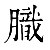 康熙字典說文解字古漢語字典國語詞典廣韻字典近義詞字典網>> 國語字典>>膱的拼音,膱的五筆,膱的解釋 膱拼音:zhí注音:ㄓˊ 五筆86編碼:euaj 五筆98編碼:EYUJ膱四角號碼:73250 筆劃:共 16 劃鄭碼:QSKH 部首:月 筆順:撇折橫橫捺橫捺撇橫豎折橫橫折撇捺 倉頡:BYIAUnicode:U+81B1膱的膱的簡單解釋膱 zhí 乾肉條:“薦脯用籩五膱,……膱長尺二寸。” 油肉腐敗。 臭。 筆畫數:16; 部首:月; 筆順編號:3511414312511534 膱的同音字熫 疻 芖 稺 祗 騭 豑 狾 汦 倁 傂 釞 芷 鷙 垁 膱相關字典膱康熙字典膱的相關詞語膱脂