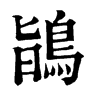 康熙字典說文解字古漢語字典國語詞典廣韻字典近義詞字典網>> 國語字典>>鴲的拼音,鴲的五筆,鴲的解釋 鴲拼音:zhī注音:ㄓ 筆劃:共 17 劃 倉頡:PAHAF鴲的鄭碼:RRKR 五筆86編碼:xjwo鴲的五筆98編碼:XJQO部首:鳥 鴲四角號碼:27627Unicode:U+9D32鴲的筆順:撇折豎折橫橫撇豎折橫橫橫折捺捺捺捺鴲字的基本解釋鴲 zhī 〔??( 剛孵出的幼鳥。m妌 )鴲〕喜鵲的一種。亦稱“冥鵲”,“山鸚哥”。 筆畫數:17; 部首:鳥; 筆順編號:35251132511154444 鴲的同音字稙 窒 洷 止 漐 銍 覟 質 陟 沚 衼 馽 伿 贄 志 鴲相關字典鴲說文解字鴲康熙字典鴲廣韻