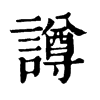康熙字典說文解字古漢語字典國語詞典廣韻字典近義詞字典網>> 國語字典>>譐的拼音,譐的五筆,譐的解釋 譐拼音:zǔn注音:ㄗㄨㄣˇ 部首:言 鄭碼:SUFD 四角號碼:08646 五筆86編碼:yusf 五筆98編碼:YUSF筆順:捺橫橫橫豎折橫捺撇橫豎折撇折橫橫橫豎捺譐的倉頡:YRTWI筆劃:共 19 劃Unicode:U+8B50譐的解釋譐 zǔn 古同“噂”。 筆畫數:19; 部首:言; 筆順編號:4111251431253511124 譐的同音字罇 鱒 僔 捘 尊 鶎 譐 鐏 噂 鱒 遵 鷷 樽 銌 嶟 譐相關字典譐康熙字典譐廣韻譐的相關詞語譐誻 譐譐