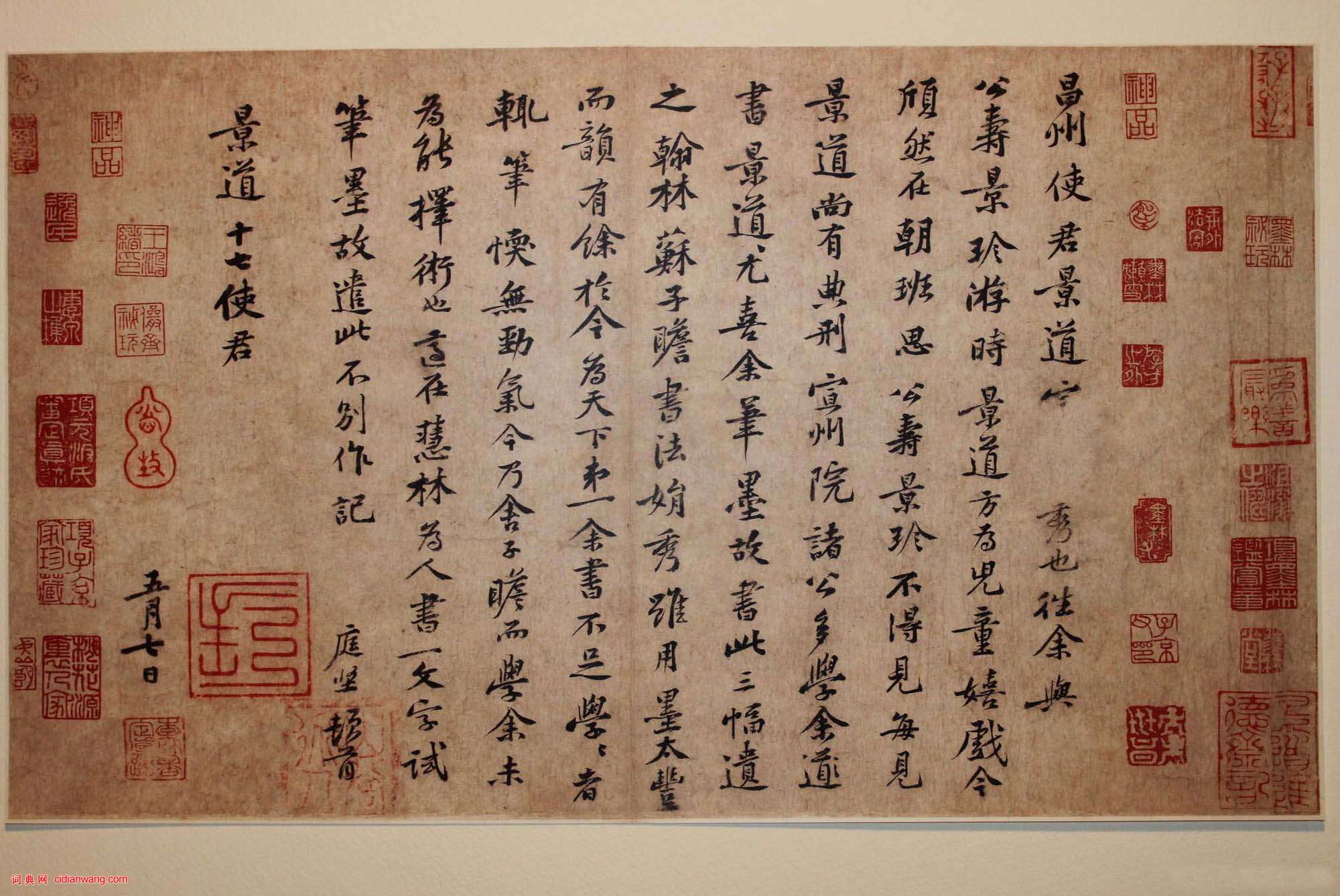 黃庭堅行書《致景道十七使君書》,紙本。信札一則,縱27.8厘米,橫47.4厘米。台北故宮博物院藏。